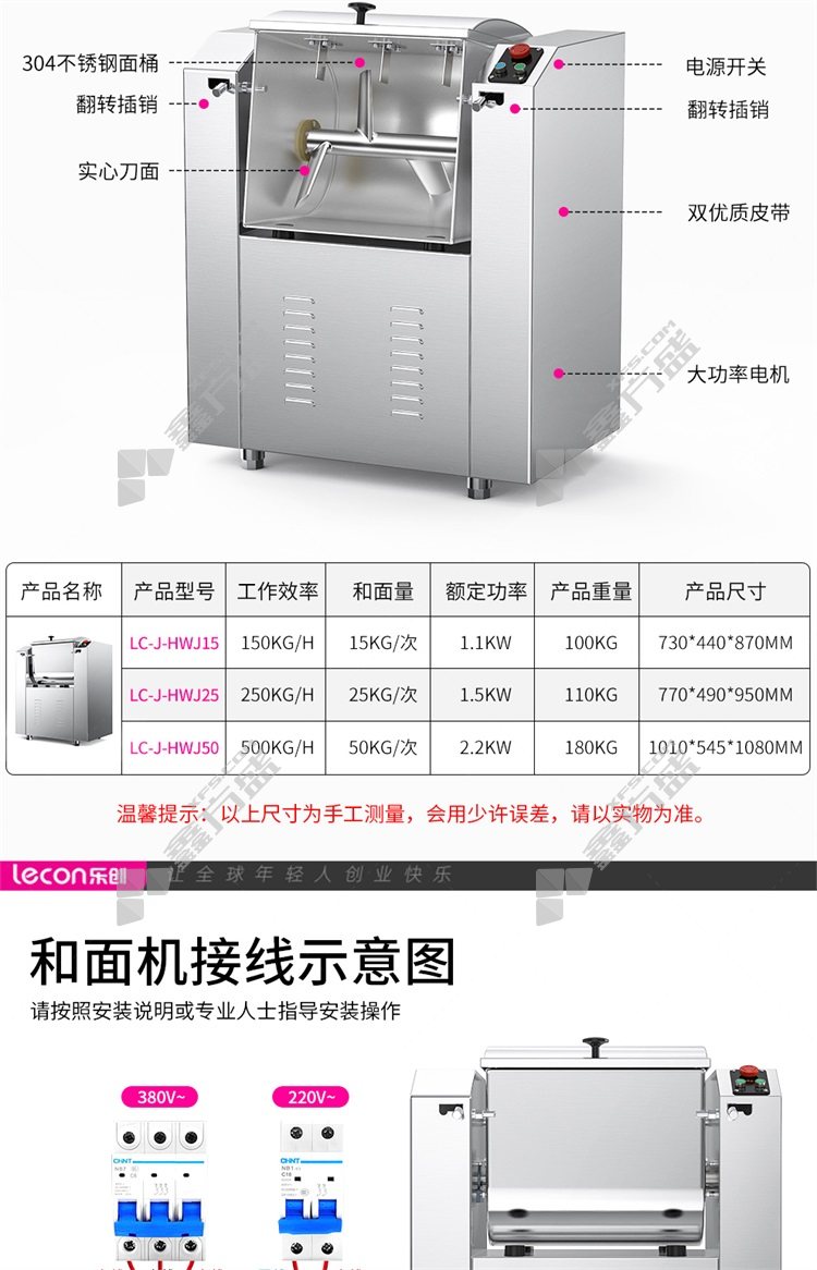 商品名称: 乐创 商用低噪音和面机25kg/次LC-J-HWJ25 1.5kw 10-30L LC-J-HWJ25