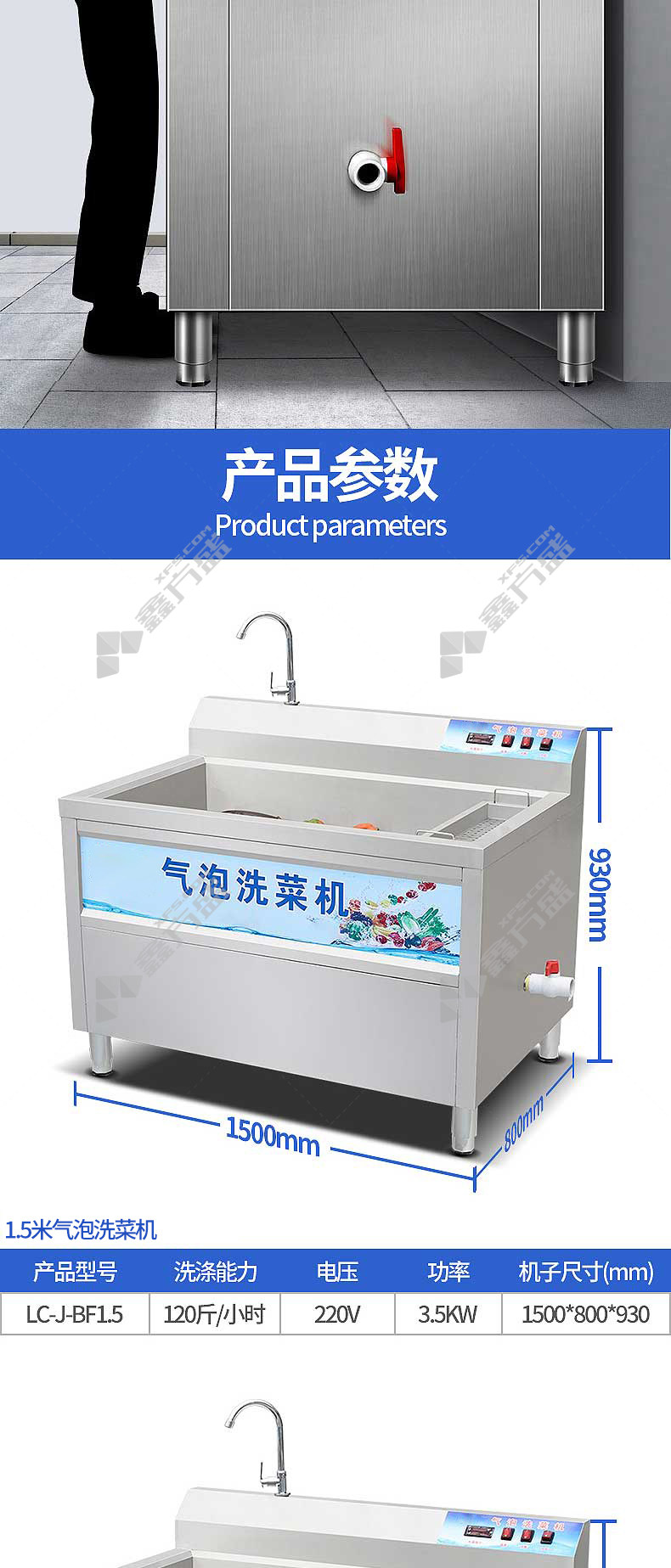 商品名称: 乐创 商用果蔬清洗机2.0米LC-J-BF2.0 电压220V功率3.5KW