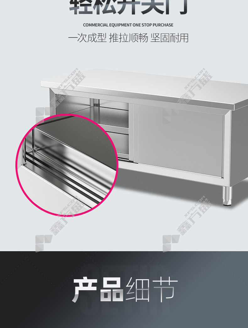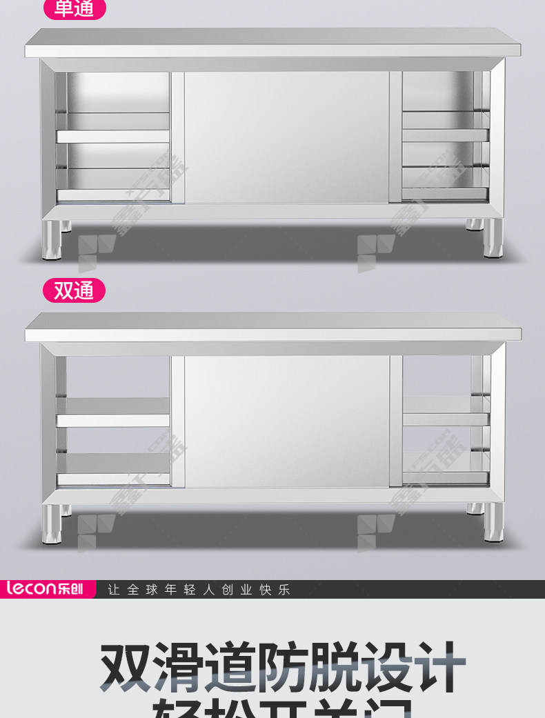乐创 商用双拉门工作台304型LC-J-BG01 304不锈钢2020*1000*800mm