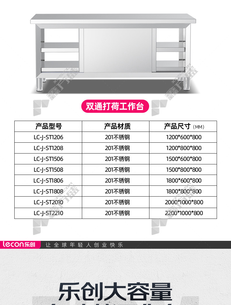 首页 首页 > 乐创 商用双通工作台LC-J-ST2010 201不锈钢2000*1000*800mm