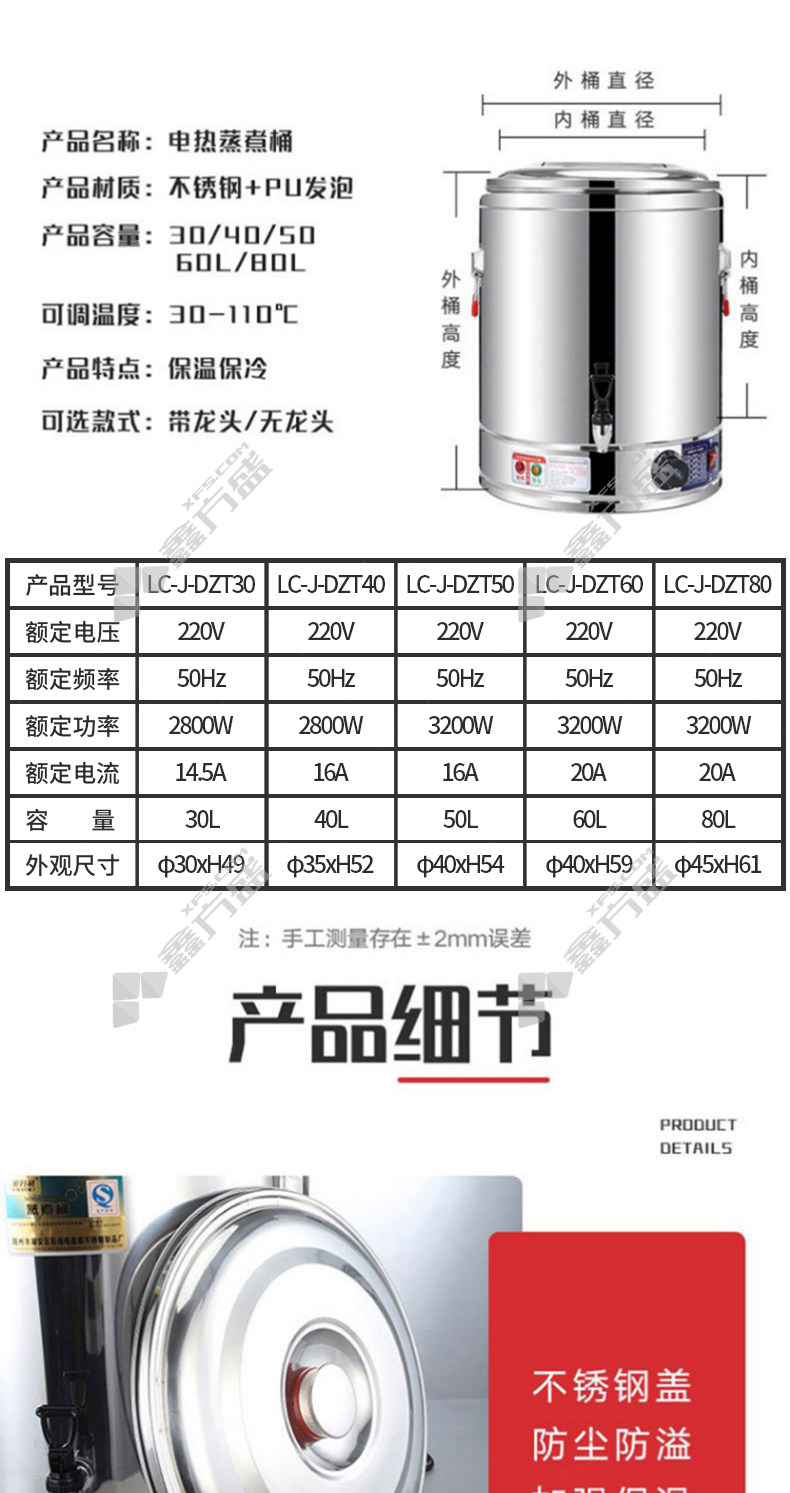 商品名称: 乐创 LC-J-DZT40 商用蒸煮桶 40L LC-J-DZT40