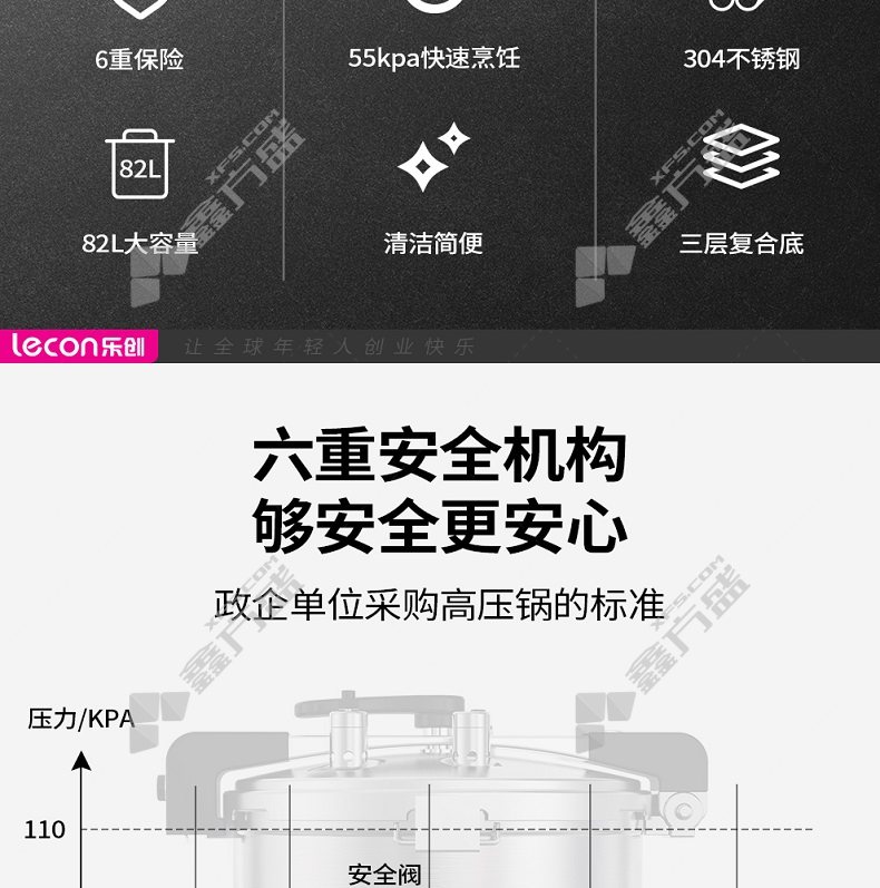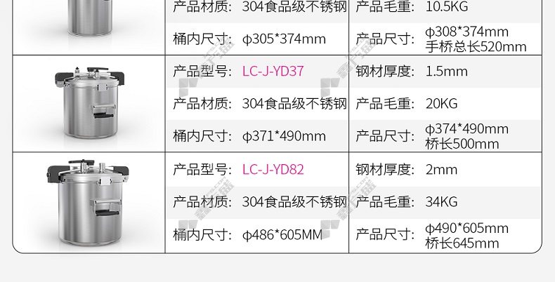 商品名称: 乐创 商用高原压力锅304不锈钢用82L LC-J-YD82 钢材厚度2mm桶内尺寸 Φ486*605mm