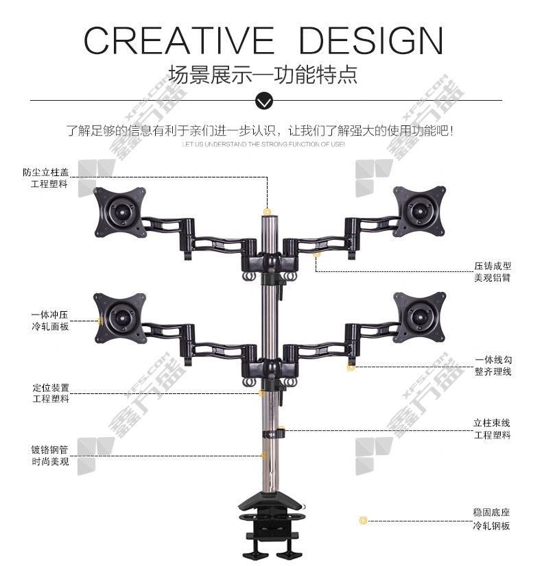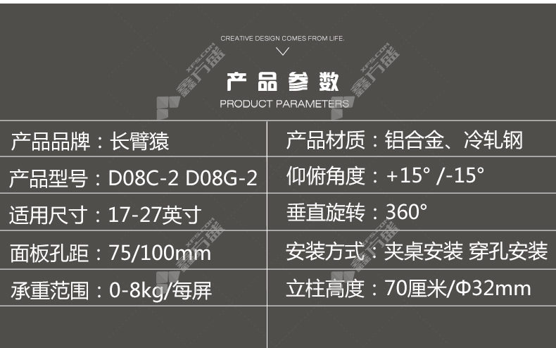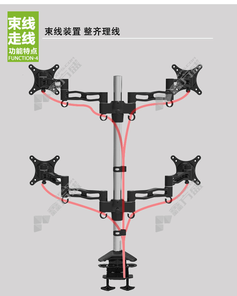 商品名称: 长臂猿 显示器支架桌面支架四屏拼接夹桌安装 D08C-2 黑色