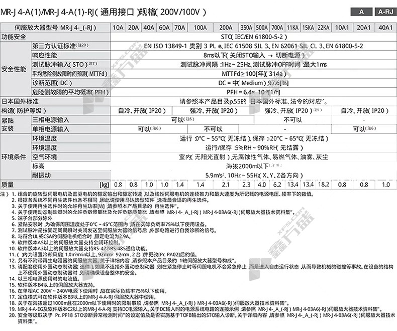 商品规格:MR-J4-200B