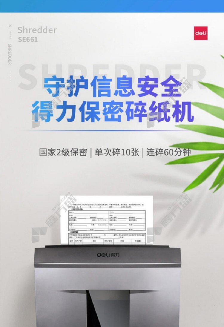 商品名称: 得力 SE661 碎纸机 金属灰 SE661
