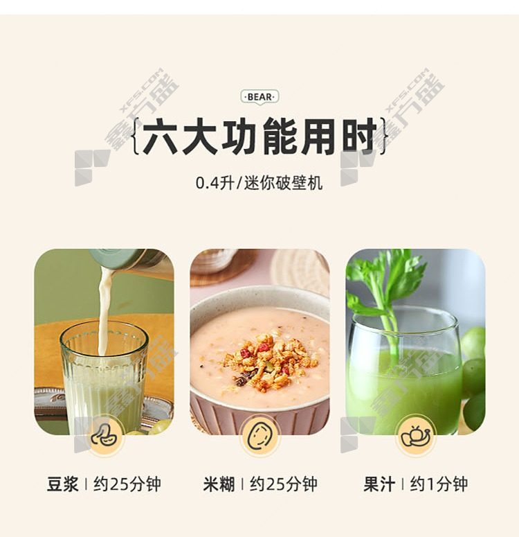商品名称: 小熊 PBJ-B05G1 破壁机 0.4L 200W搅拌 500W加热