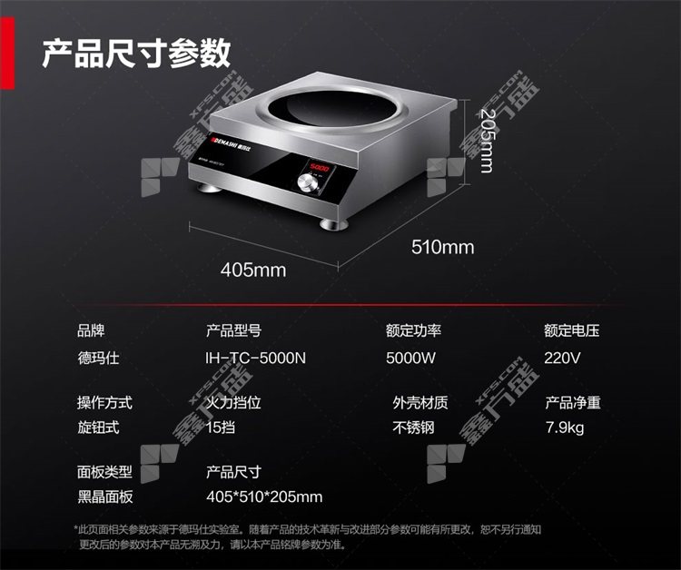 商品名称: 德玛仕 商用电磁炉 凹面电磁炉 5000W全不锈钢机身 220V 5000W IH-TC-5000N