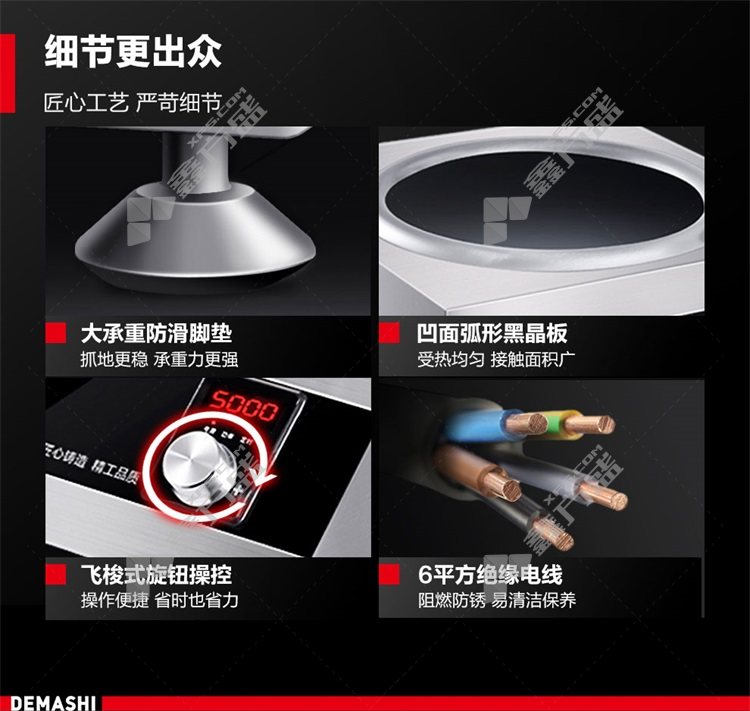 德玛仕 商用电磁炉 凹面电磁炉 5000W全不锈钢机身 220V 5000W IH-TC-5000N