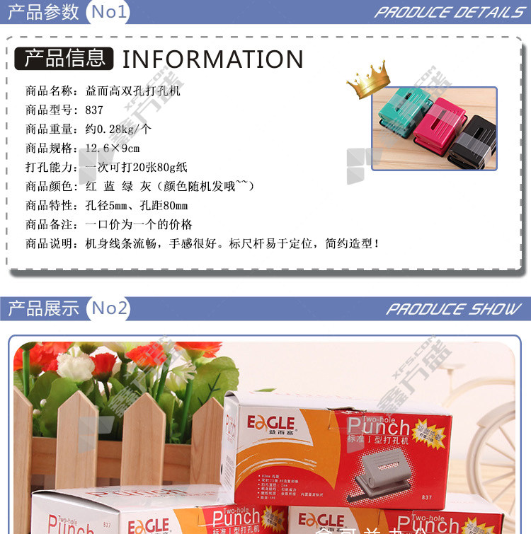 商品名称: 益而高 837 打孔机 837 2孔 红色