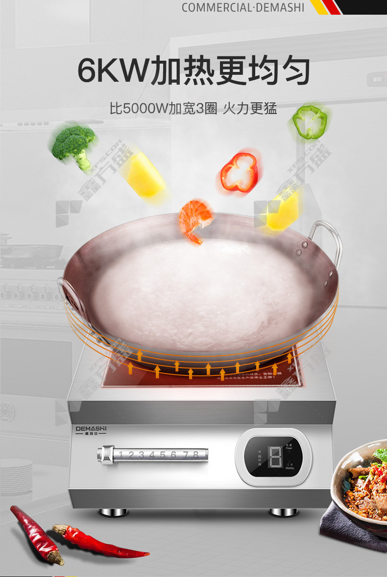 德玛仕 凹面电磁炉8000W 380V 全不锈钢【立式】 380V 8000W IH-TC-8000NA