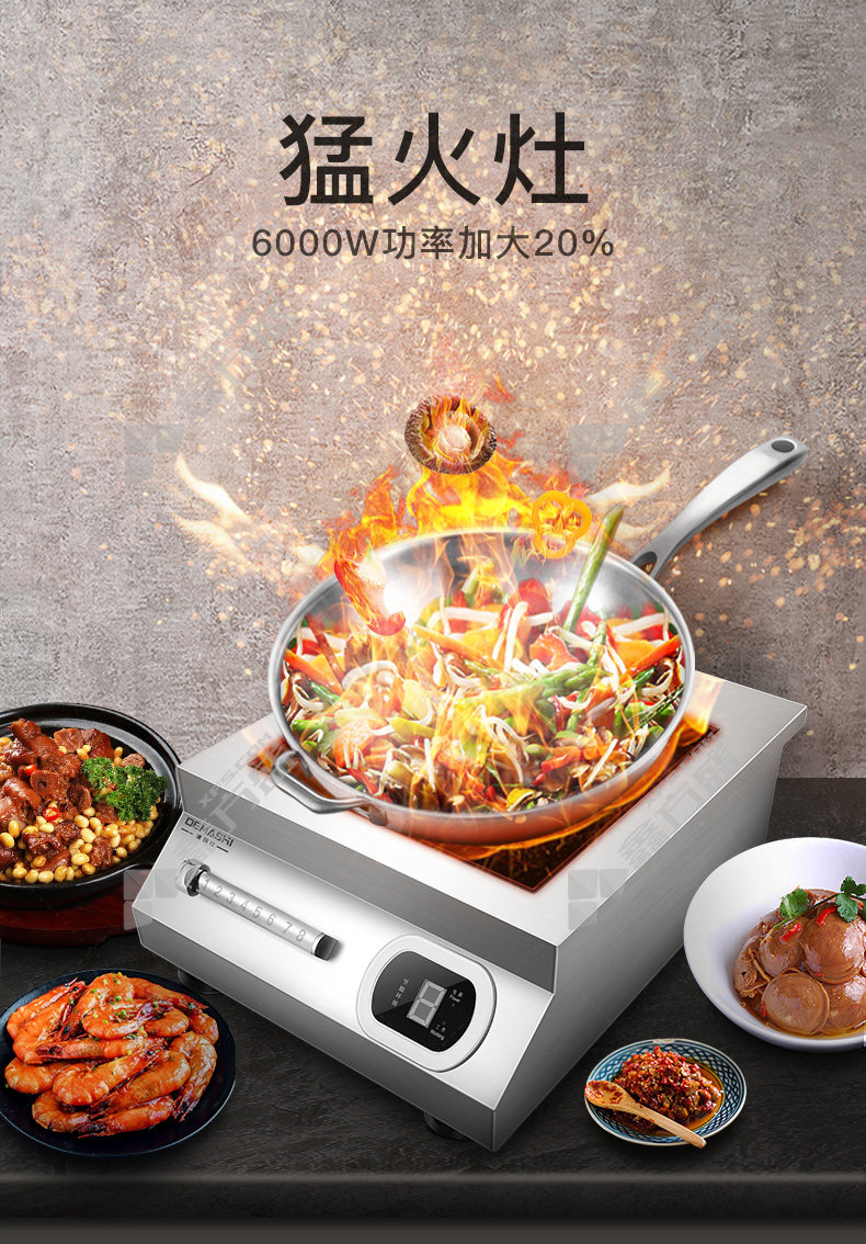 商品名称: 德玛仕 平面电磁炉6000W全钢厚款平面6000W磁控款 220V 6000W IH-TT-6000W