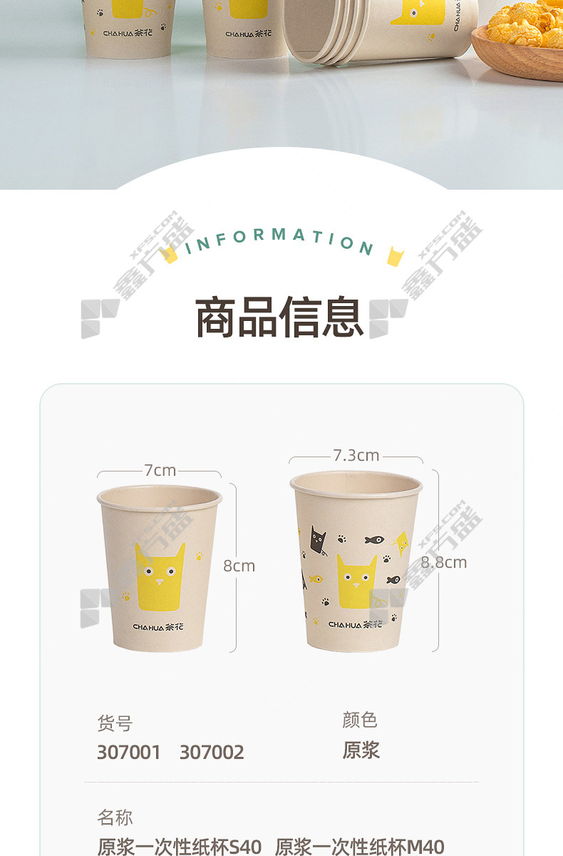 商品名称: 茶花 307001 原浆一次性纸杯 原浆色 180ml 307001