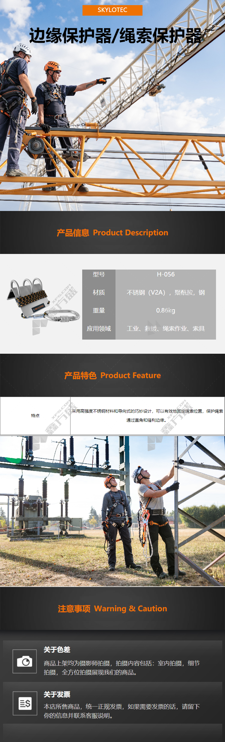 商品名称: 斯泰龙泰克 边缘绳索保护器 适用于工业、救援、绳索作业、索具 H-056 重0.86kg