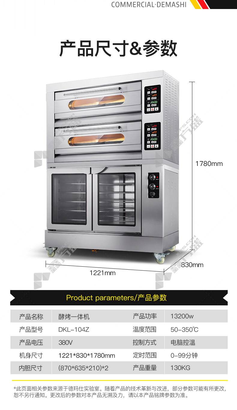 德玛仕 DKL-104L-10FJ 上烤下醒一体组合烤箱 烤箱13200W发酵箱1600W 烤箱232L发酵箱400L