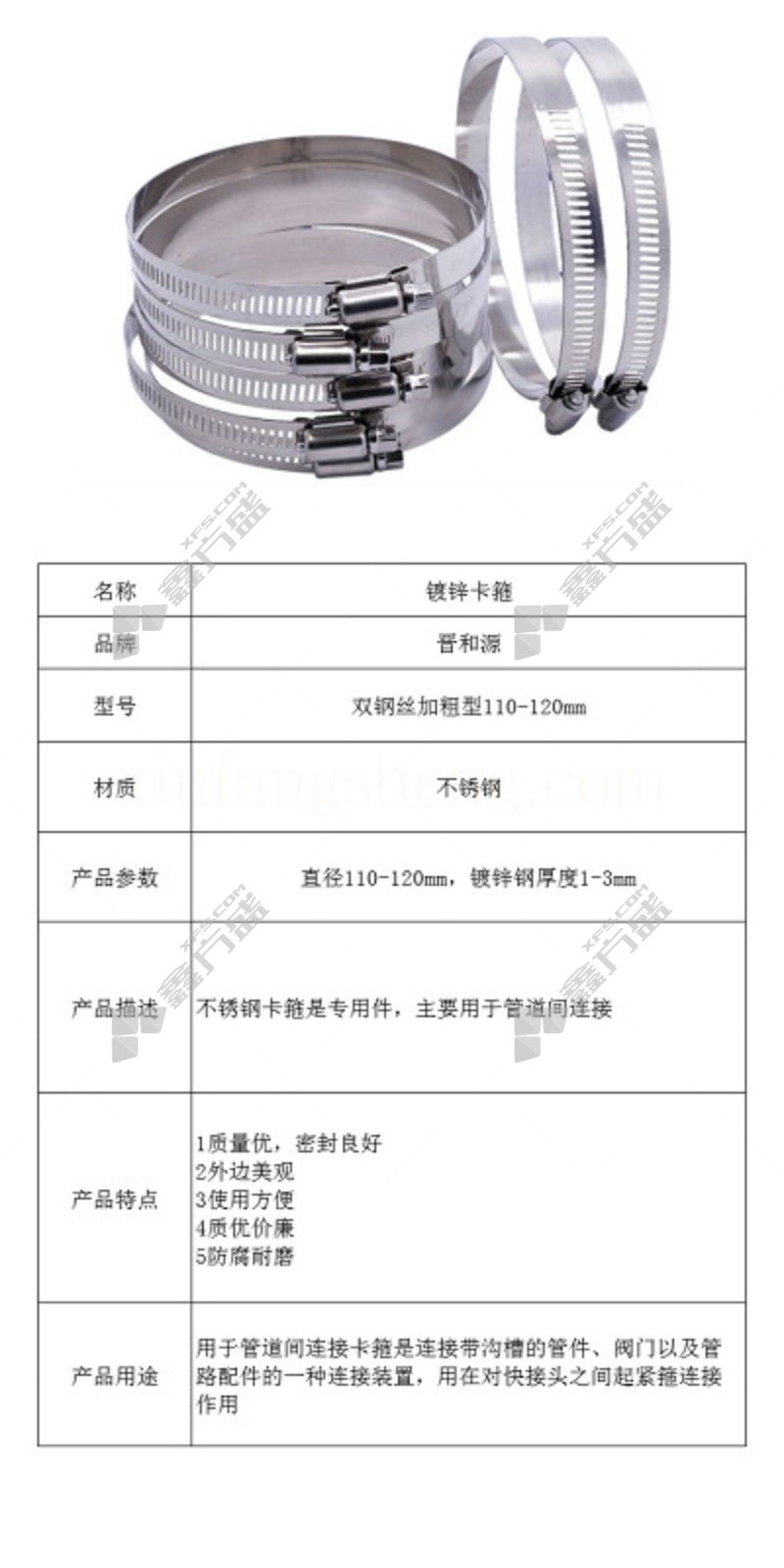 包装清单:晋和源 不锈钢双钢丝卡箍*1