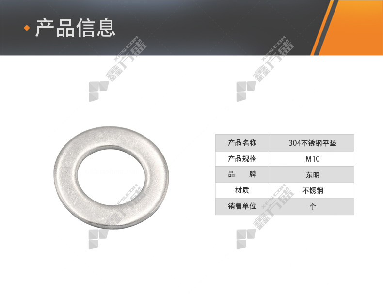 商品名称: 东明 DIN125 A级 304不锈钢平垫 M10