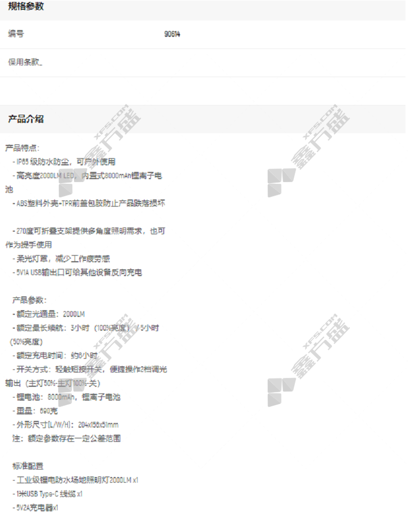 商品规格:90614/2000LM/204*156*51mm