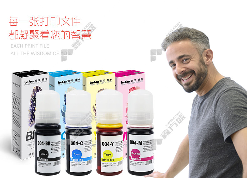 首页 首页 > 得印 004系列墨仓式四色墨水套装 青色/红色/黄色/黑色 适用爱普生L1118 1119 3108 3118 3119