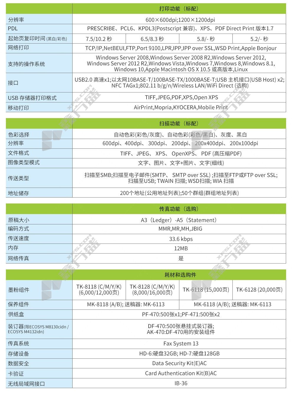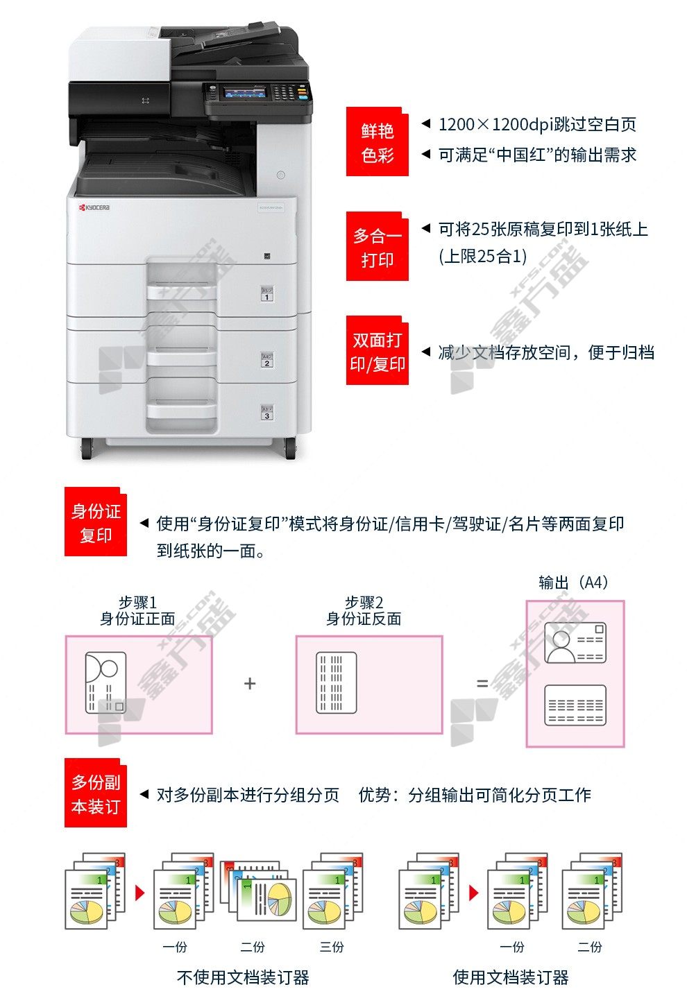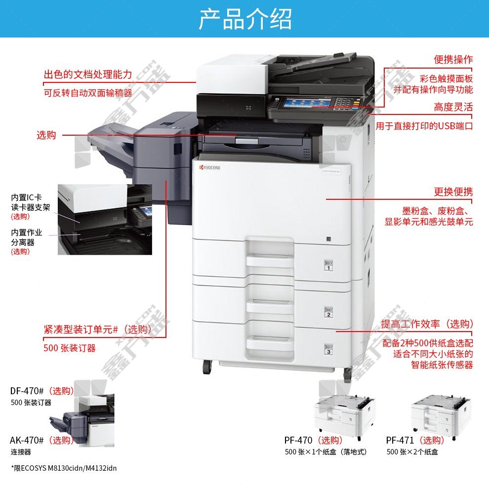 商品名称: 京瓷 M8124cidn A3彩色多功能数码复合机 选配2 M8124cidn 标配含输稿器+单纸盒