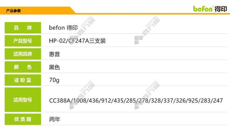 商品名称: 得印 CF247A 碳粉套装三支装 黑色 CF247A