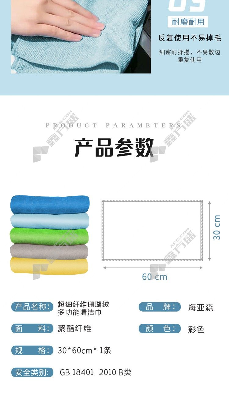 商品名称: 海亚森 TK-1004 超细纤维珊瑚绒多功能清洁巾 30*60cm 彩色 50g TK-1004