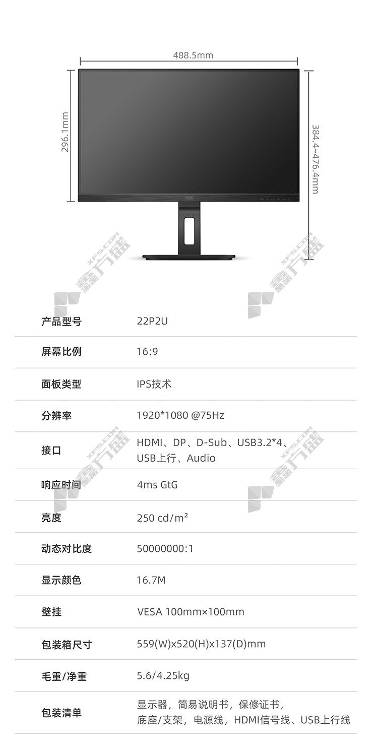 商品规格:21.5英寸/1080P/22P2U