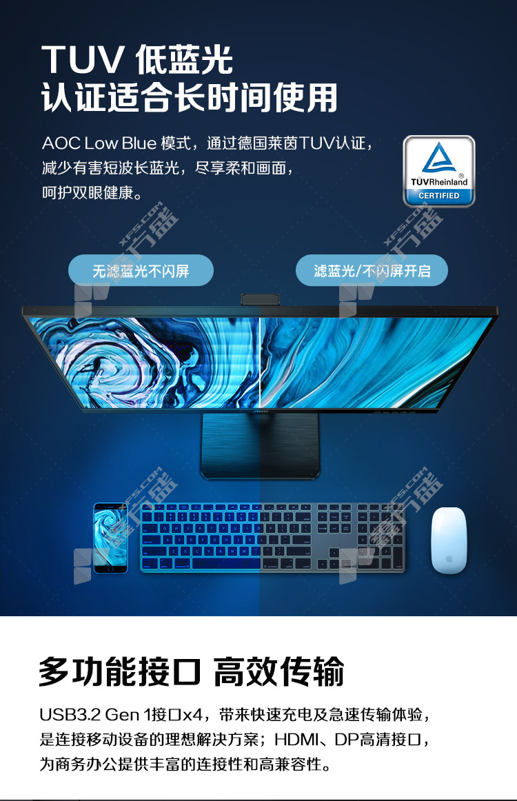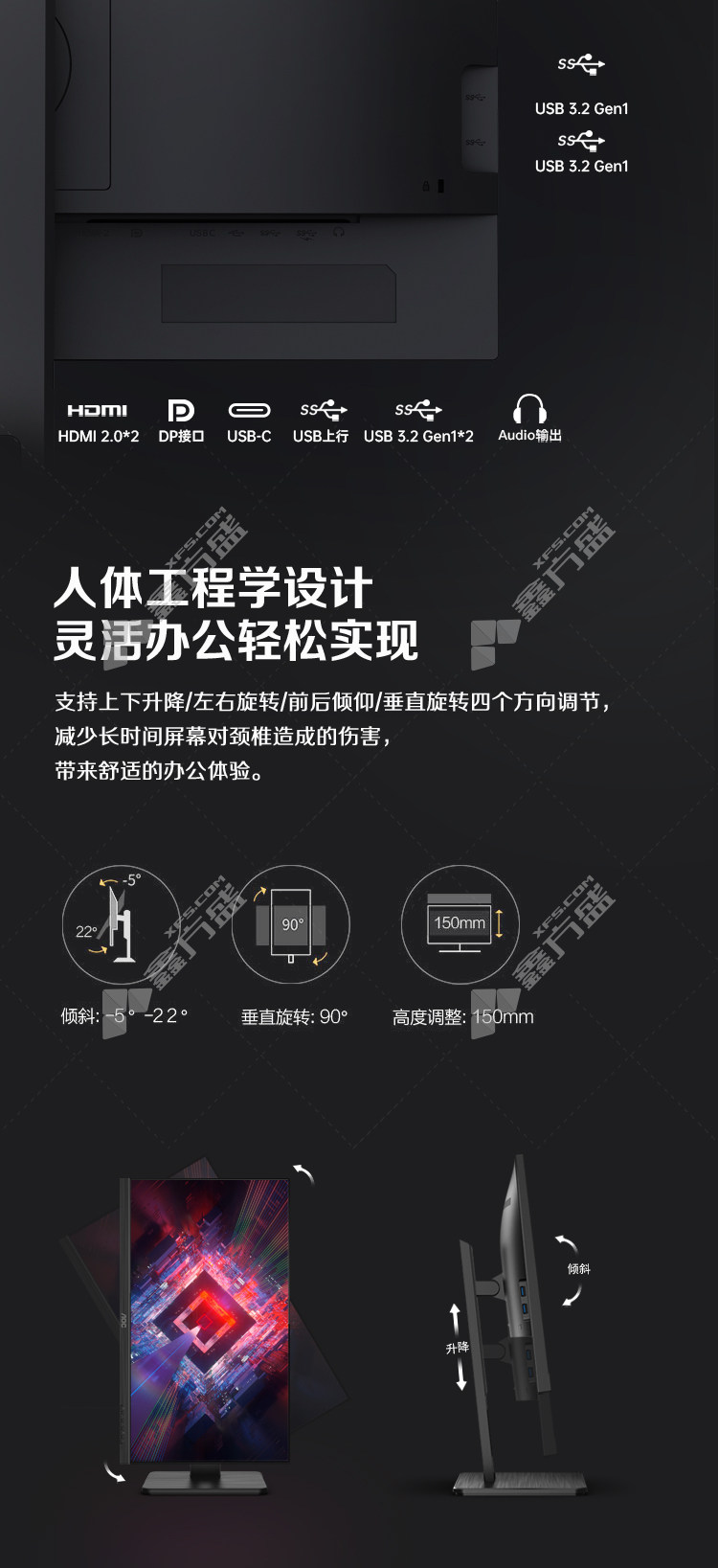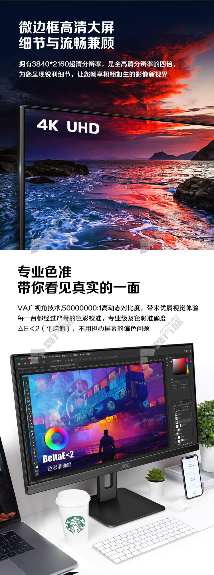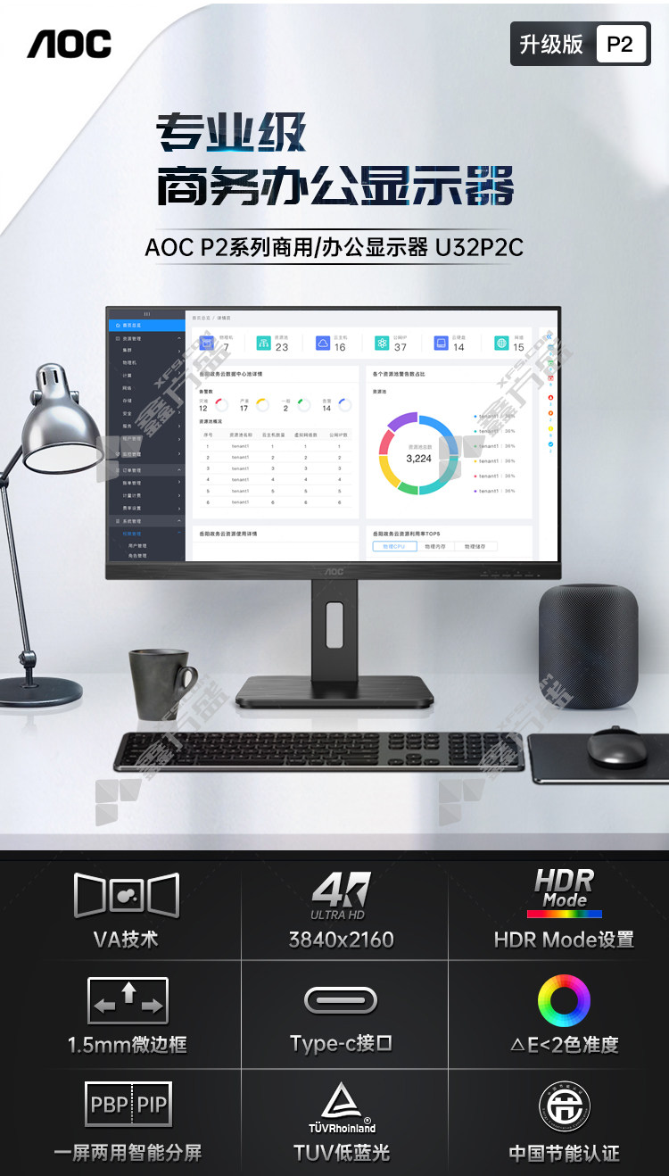 商品名称: AOC U32P2C type-c 65W反向充电电脑显示器 31.5英寸 4K U32P2C