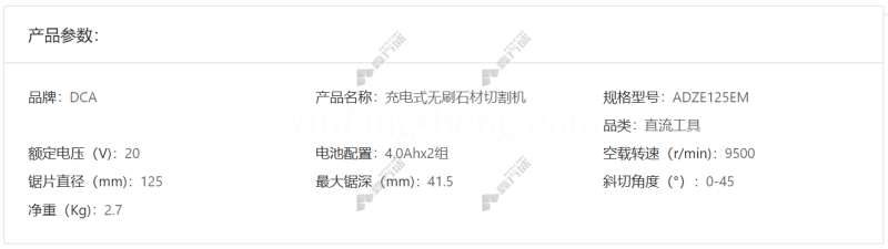 商品名称: 东成DCA 充电式石材切割机 ADZE125EM 20V 4Ah 两电一充 无刷 00002210001