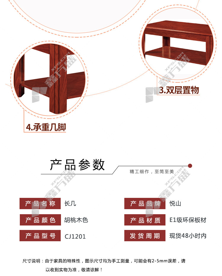 规格: 长几 1200*600*480mm 胡桃木色