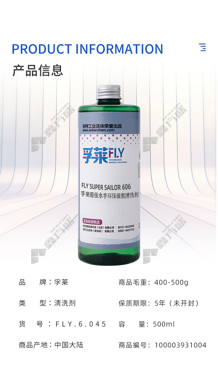 商品名称: 孚莱 超级水手环保碳氢清洗剂 FLY SUPER SAILOR 606 500ml