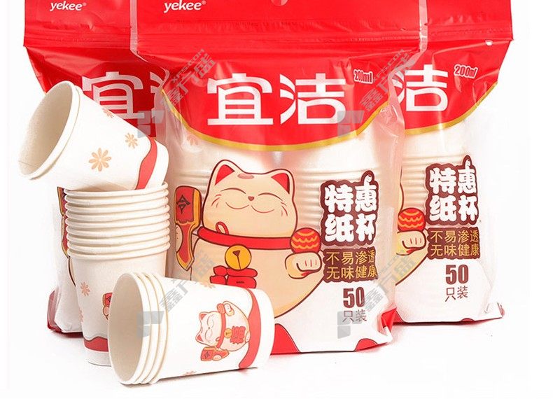 商品名称: 宜洁 Y-9633 一次性纸杯 白色 200ml Y-9633