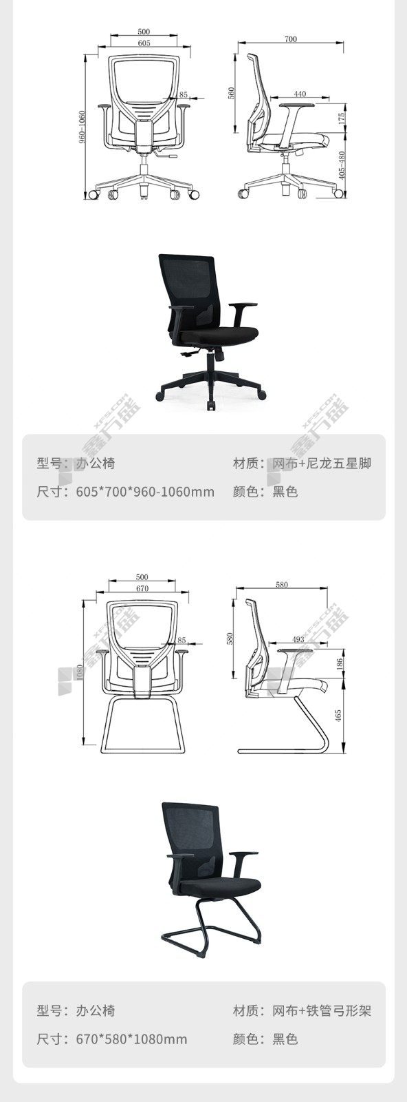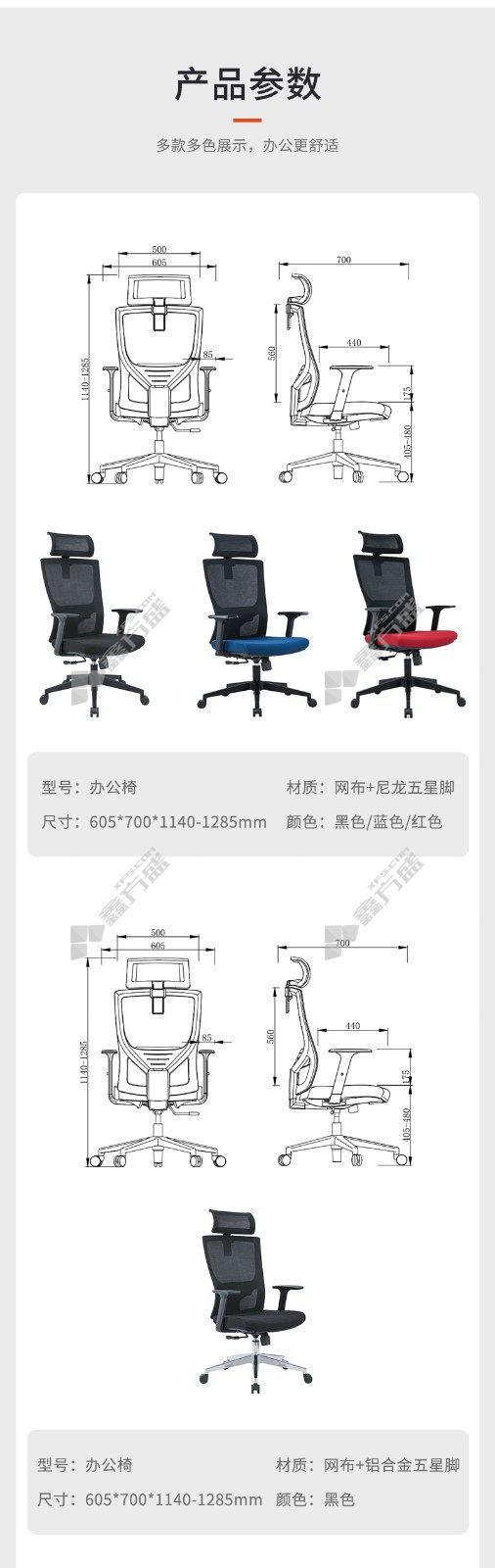 商品名称: 悦山 可升降转椅电脑椅 605*700*1140-1285mm 全黑色