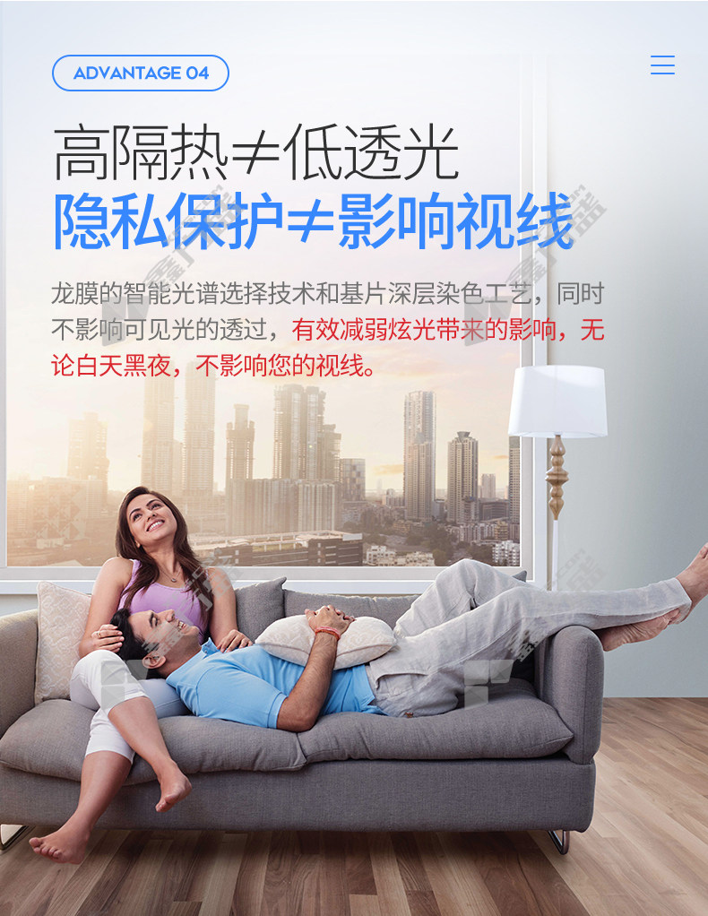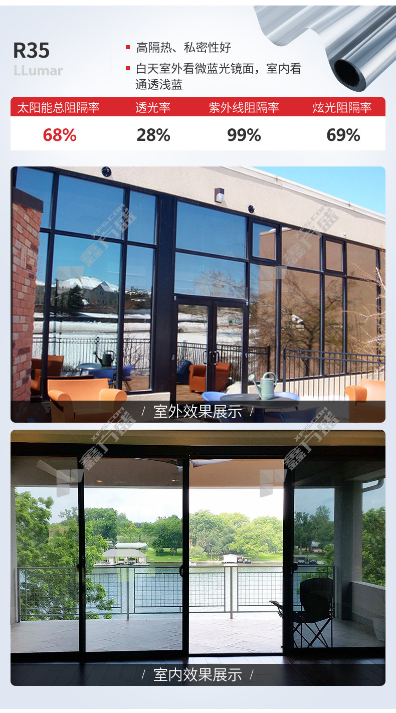商品名称: 龙膜 RHE35 外贴高反射建筑隔热膜 1.8m 透射率25% 反射率外52%内47% 太阳能阻隔率74%