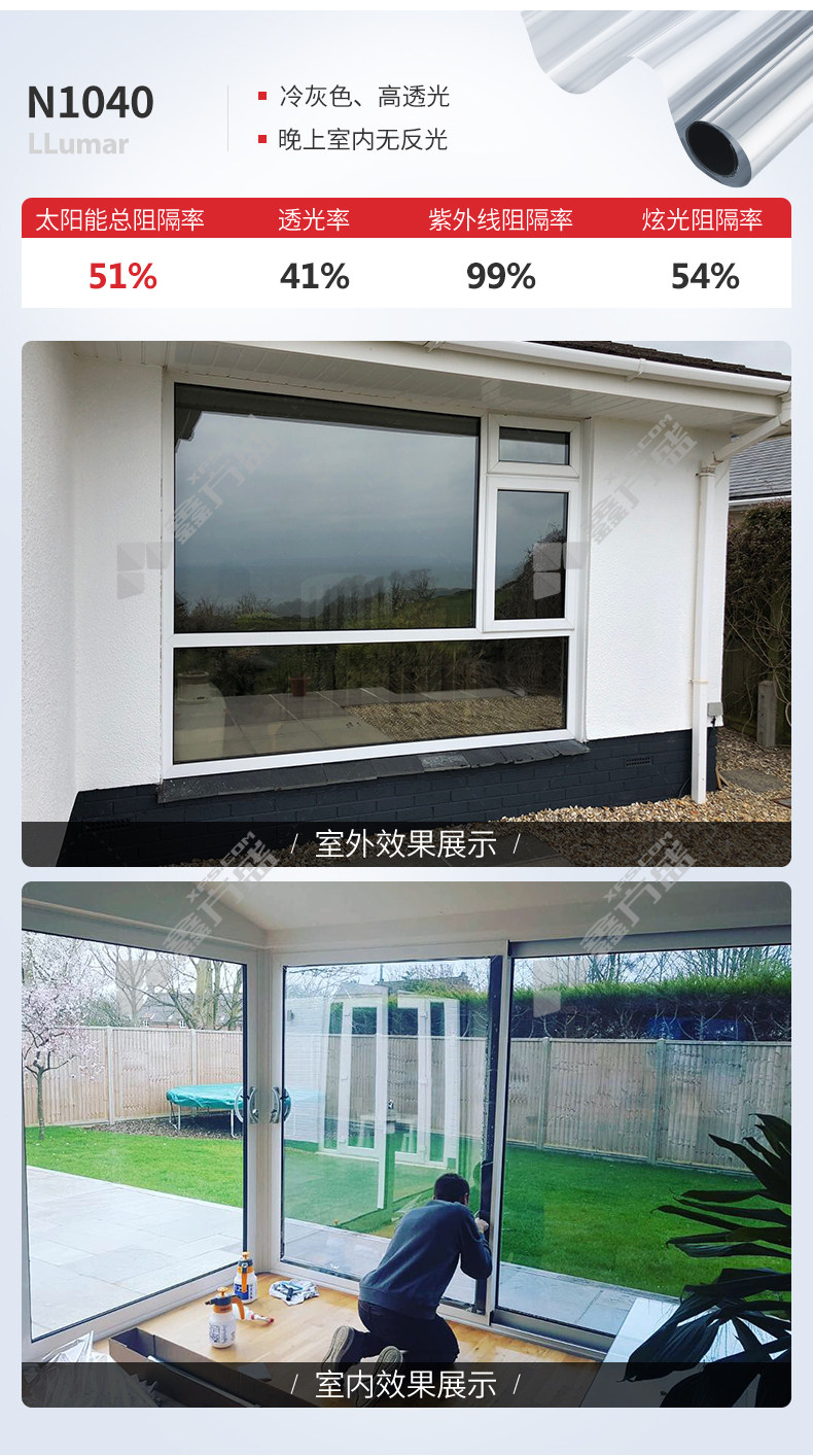 龙膜 R50 内贴高反射建筑隔热膜 1.8m 透射率49% 反射率27% 太阳能阻隔率58%
