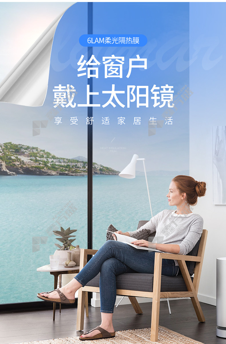 龙膜 R50 内贴高反射建筑隔热膜 1.8m 透射率49% 反射率27% 太阳能阻隔率58%