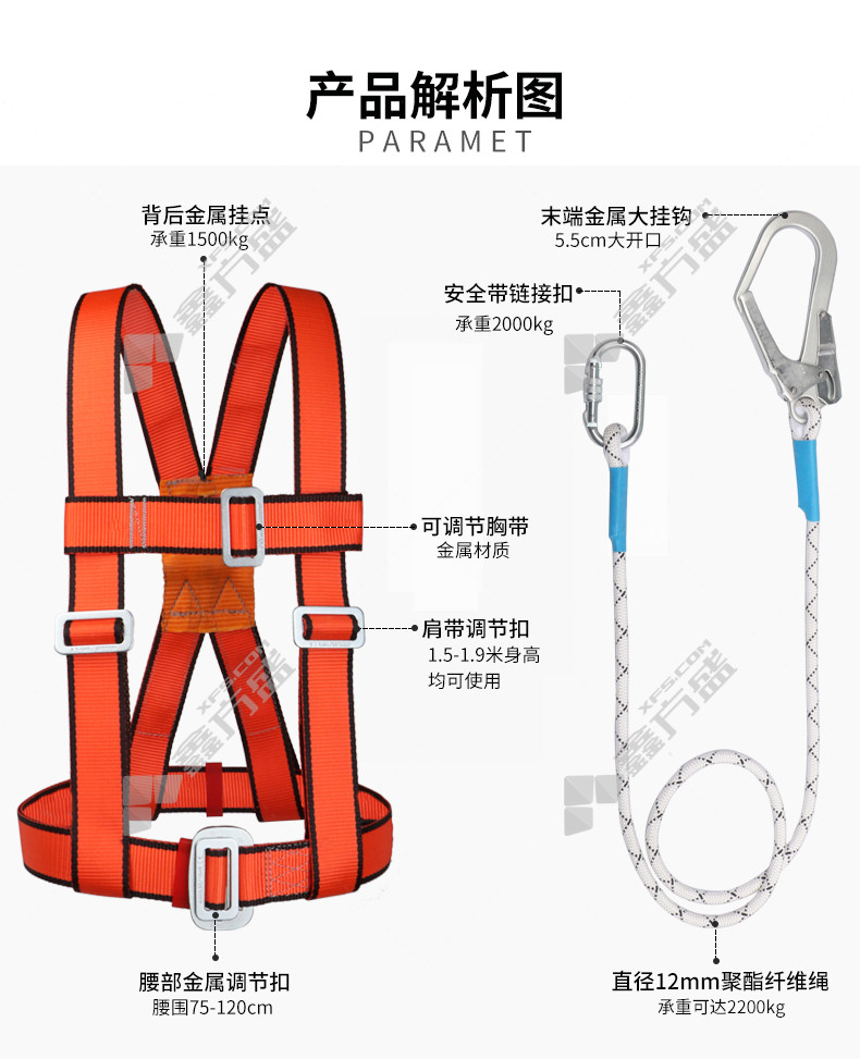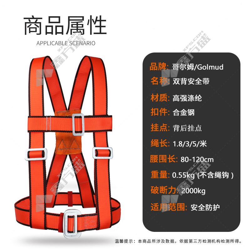 商品名称: 哥尔姆 GM8037 半身式 安全带 橙色 双小钩3m