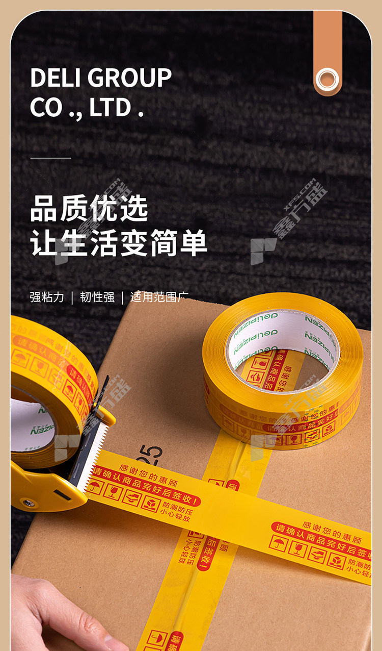 首页 首页 > 得力 正品快递封箱胶带 33973 42mm*100m 50μm 白底绿字