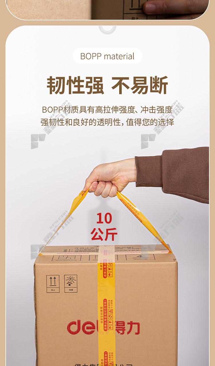 商品名称: 得力 正品快递封箱胶带 33973 42mm*100m 50μm 白底绿字