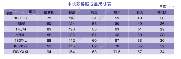 商品名称: 蓝装 SYM001 冬装内胆工作服 藏蓝 185码 FHBN102