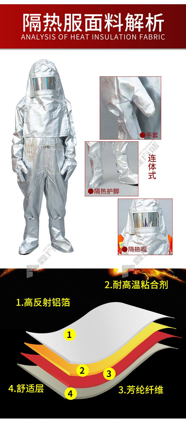 隔热服材质:复合铝箔防火布、纯棉