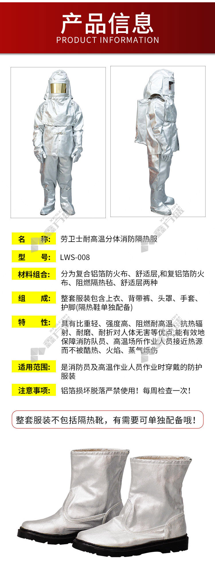 劳卫士 不带背囊 1000度 LWS-012-A 隔热反穿衣 1.3米 银白