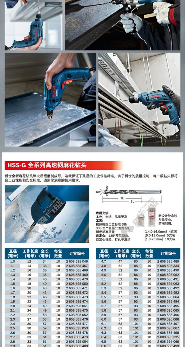 商品名称: 博世 直柄麻花钻 2608585498 φ6.3mm