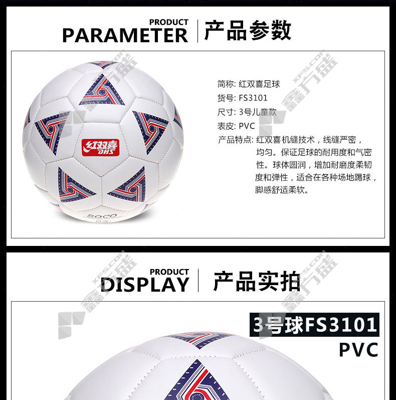 商品名称: 红双喜 FS3101-1 3号足球 白色+蓝色