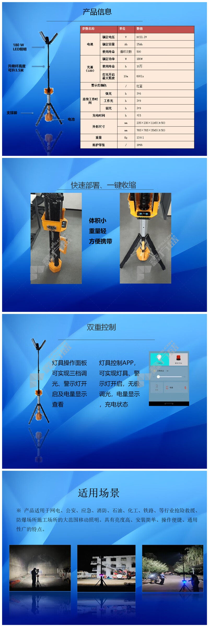 移动照明系统防护等级:IP66