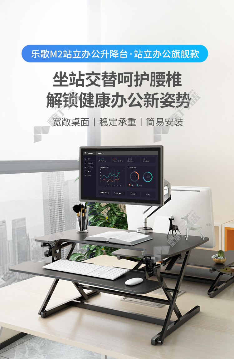 首页 首页 > 乐歌 M2M 站立式升降台电脑桌子支架 M2M