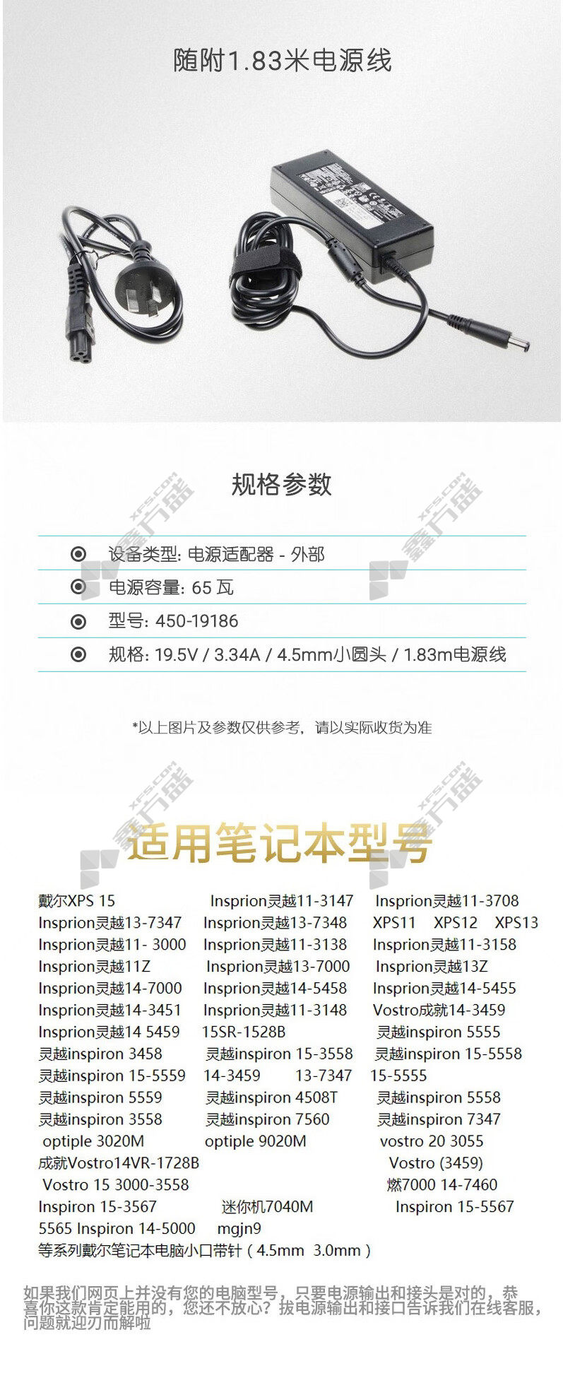 商品名称: 戴尔 130W 四代小口笔记本电脑充电器 6.67A 19.5V