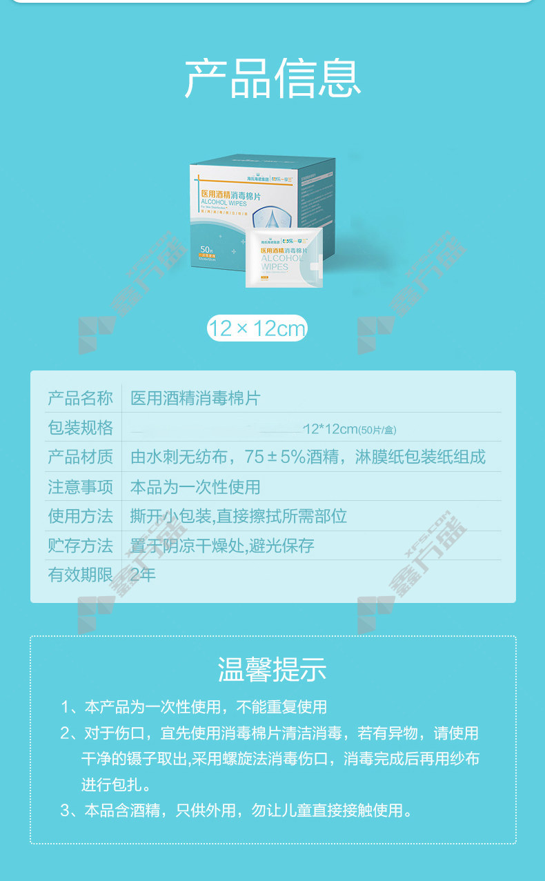 商品名称: 海氏海诺 医用酒精消毒棉片 50抽 120*120mm
