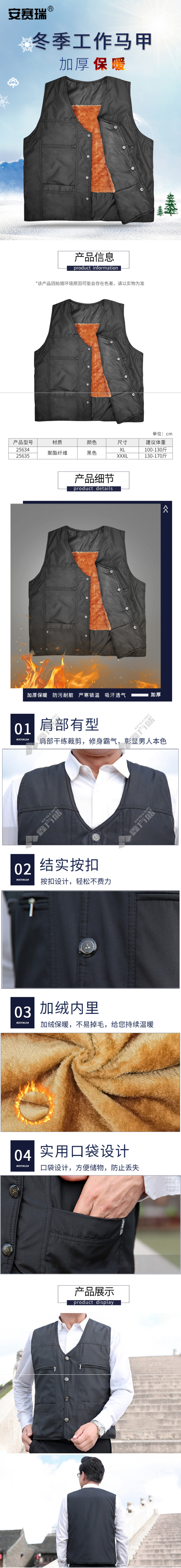 安赛瑞 冬季加厚加绒工作马甲 XL码 25634