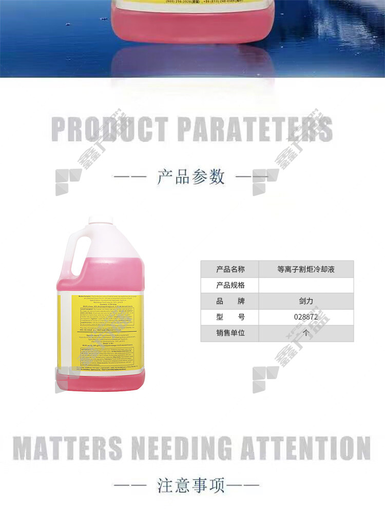 商品名称: 等离子割炬冷却液 028872