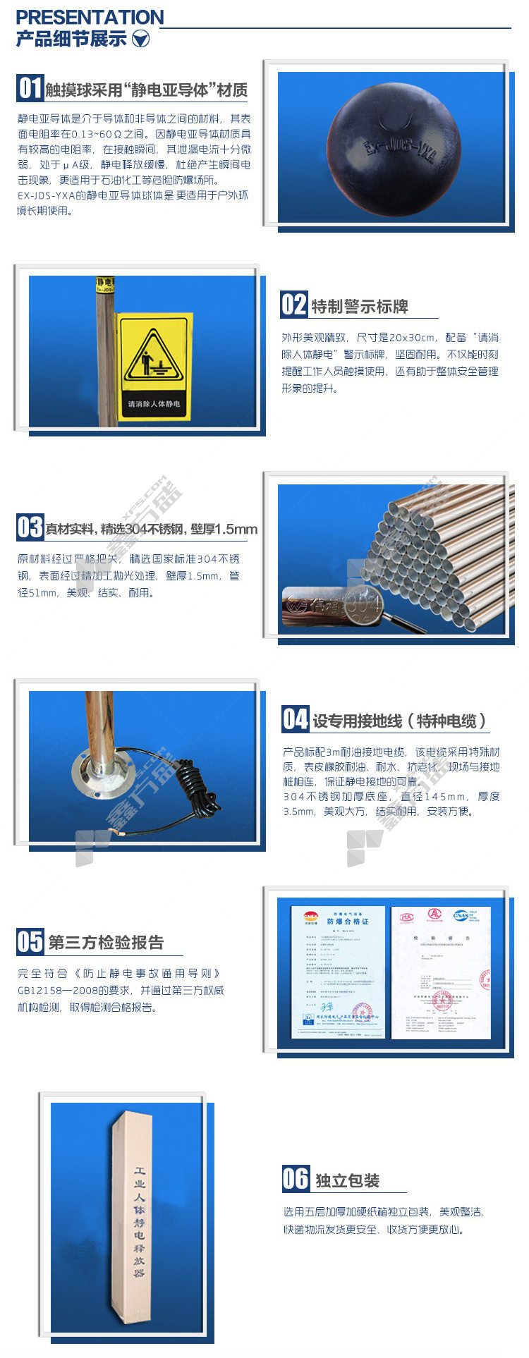 首页 首页 > 谋福 8762本安型防爆人体静电释放器 8762 触摸球100mmφ 高1.1m